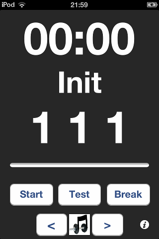 The start screen in the init phase, go to the i at the right bottom edge to set up your training: